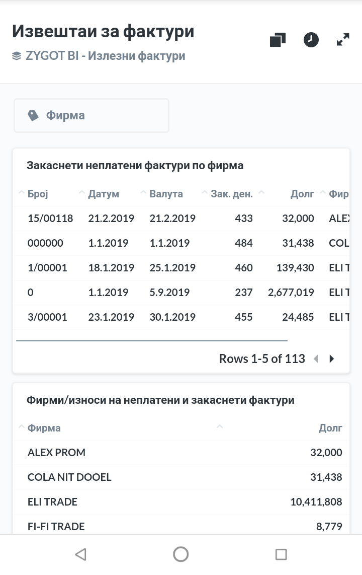 Мобилна апликација за извештаи од софтверот VERP