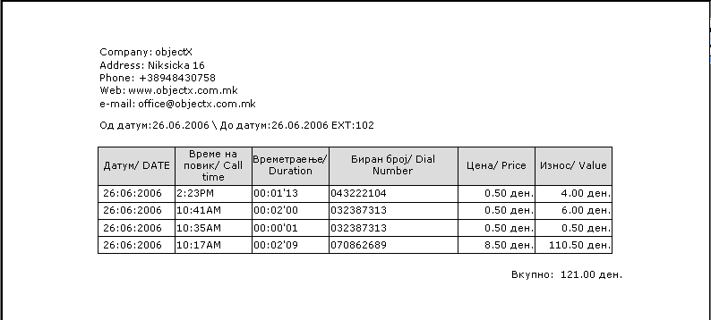 Слики од софтвер за Телефонска централа