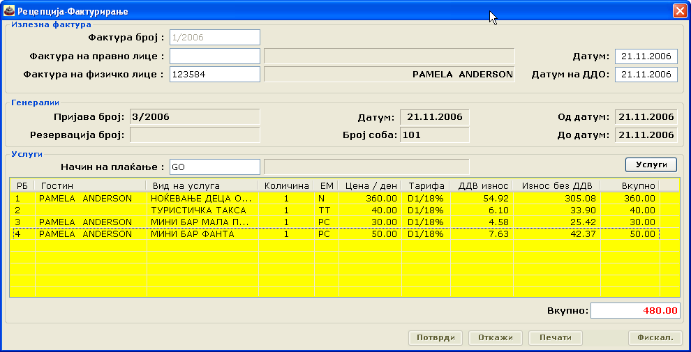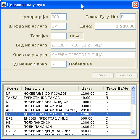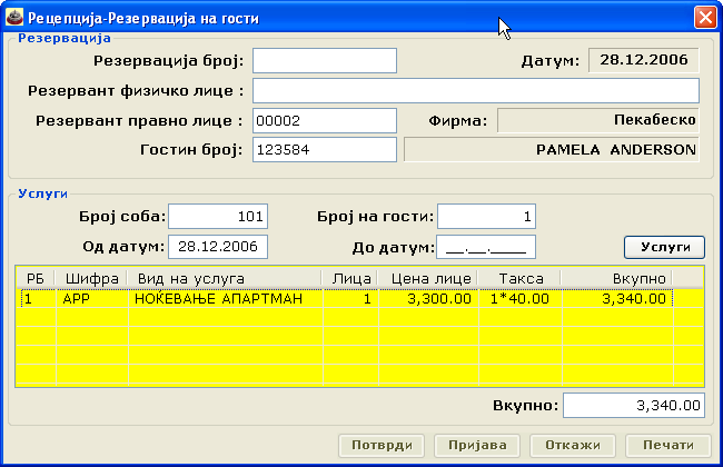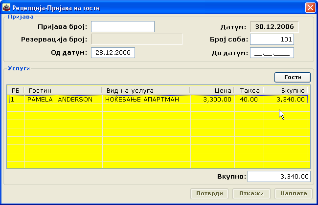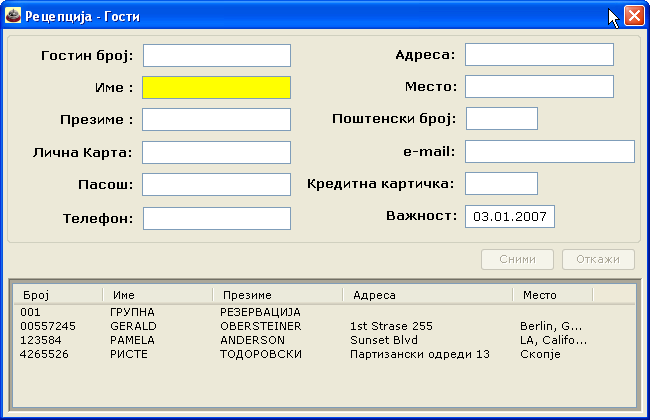 Слики од софтвер за Рецепција