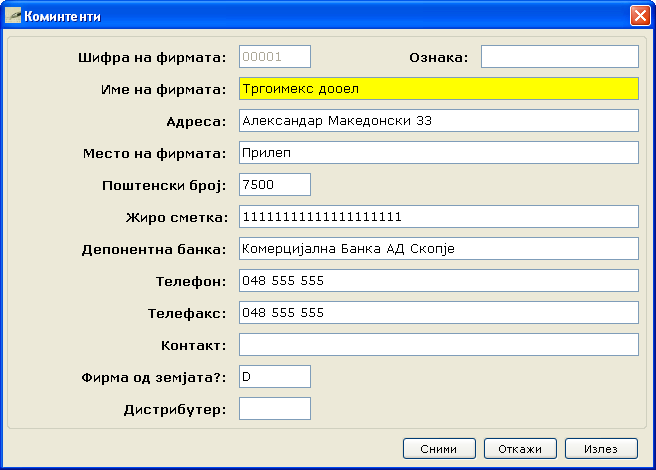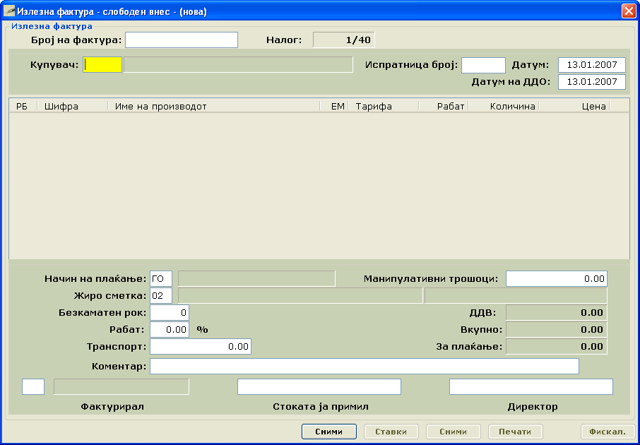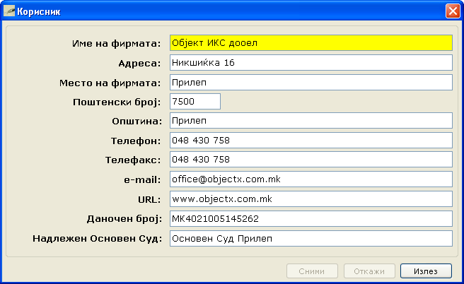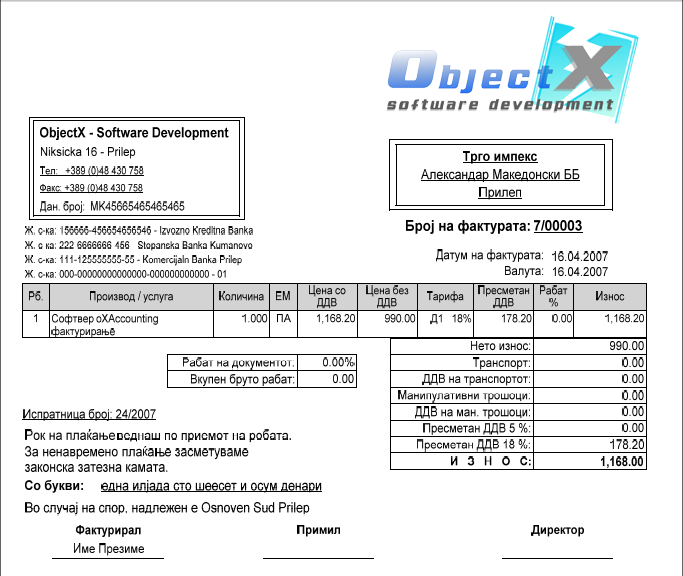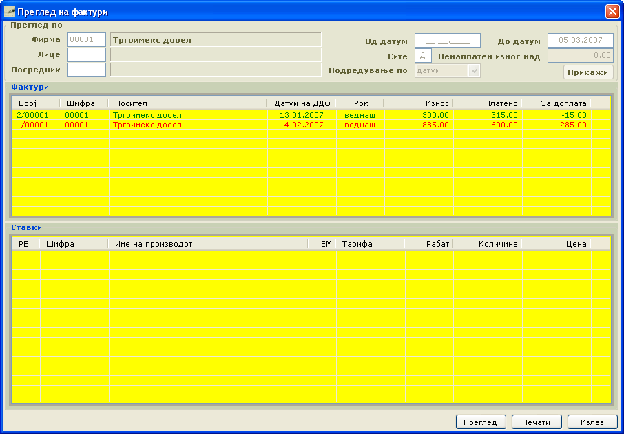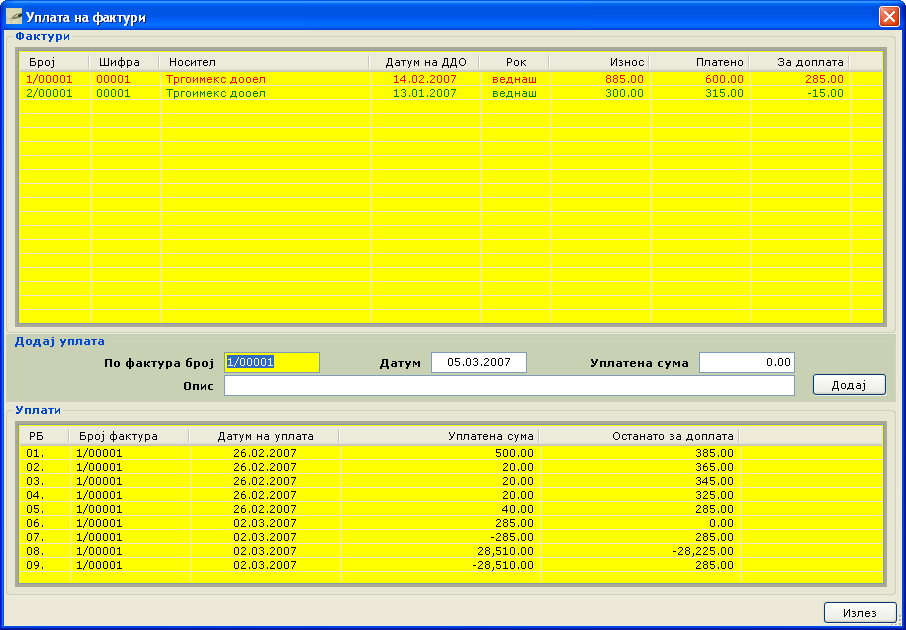 Слики од софтвер за Фактурирање